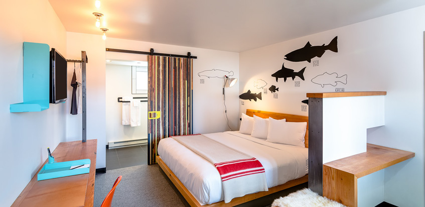 博兹曼云雀酒店(The LARK Bozeman)是一家充满艺术气息和设计感的精品小酒店,酒店位于博兹曼市中心,历史街区主街道上(Main Street)。酒店房间均由本地艺术家装饰,这些独特的、现代的房间温馨、舒适,有着现代蒙大拿风格。酒店服务贴心,工作人员真诚、幽默且热情。