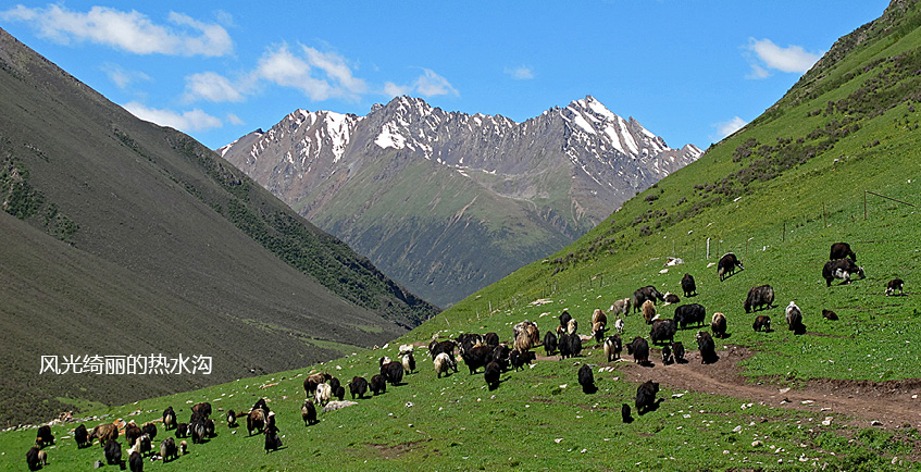 早餐后,驱车巴塘草原南部的深山峡谷之中,探索风光绮丽的热水沟(海拔3,900米)。热水沟因为沟内有30多个热水泉眼而得名。这里高山流水、空气清新,有奇特的地貌,层层叠叠的天然石岩有如浮雕艺术,喷涌的清泉在岩石上形成漂亮的珍珠瀑布,还有远处高耸的雪山。目前沟内还是一片神秘的净地,只能沿山谷间的小路骑马或徒步进入。